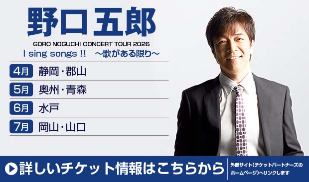 ♫ 野口五郎 GORO NOGUCHI CONCERT TOUR 2026「I sing songs !! 〜歌がある限り〜」 フェスティバルホール (大阪) ※チケット発売中!